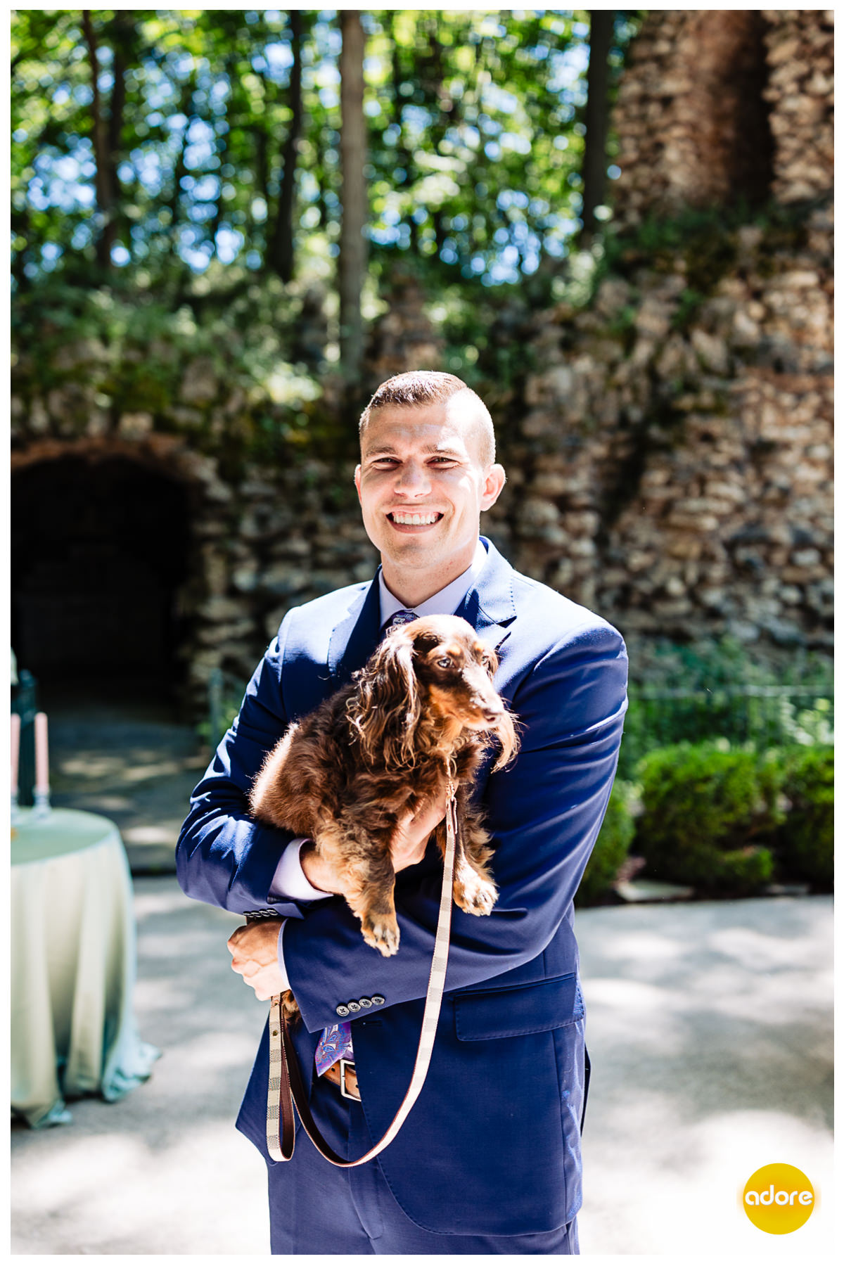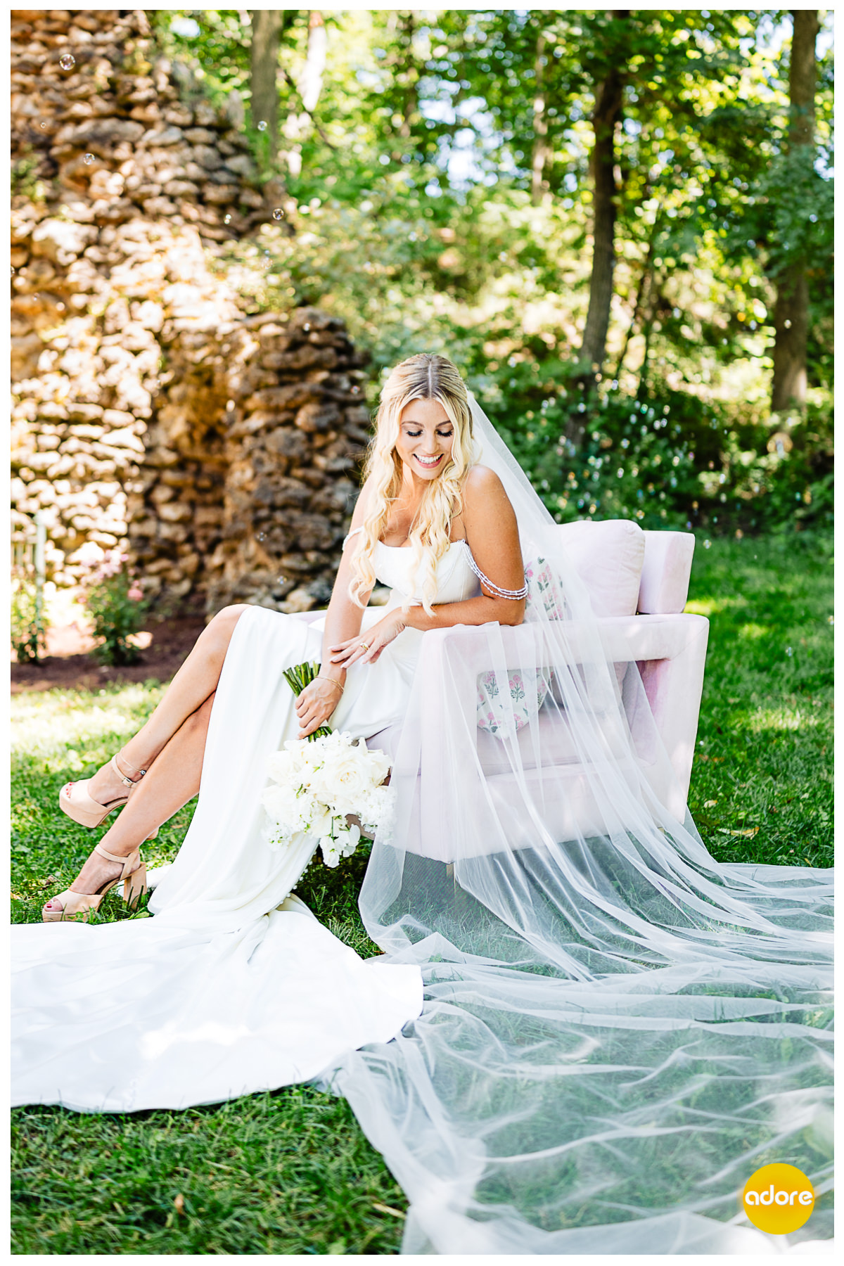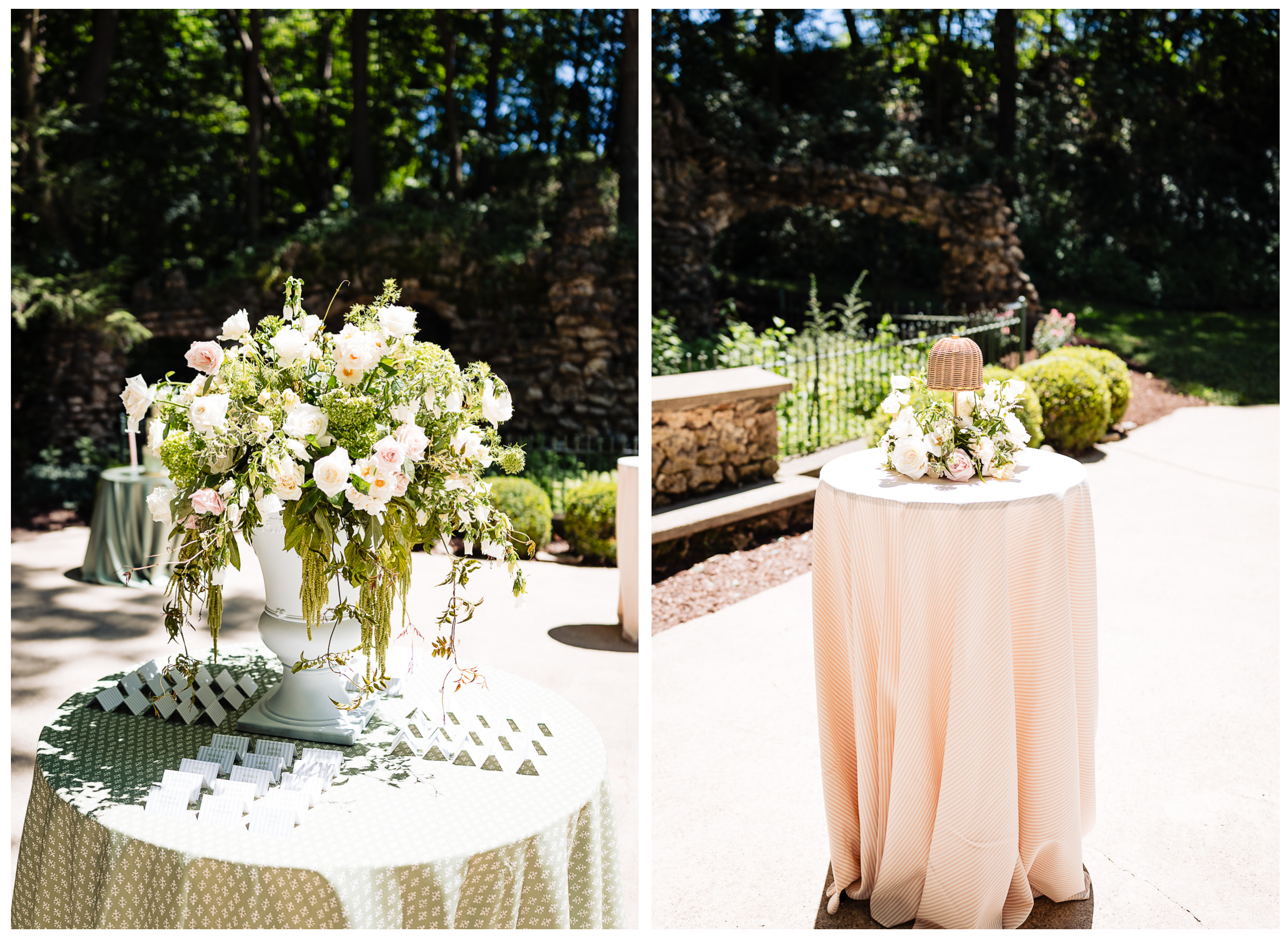 The Garden Grotto at Nazareth Hall truly a gem of it’s own. Getting to the grotto, you can take a winding stroll down from the butterscotch bricked venue on the historic property that feels like stepping into your own secret garden, or hitch a ride on one of luxury golf shuttles that are available to make the journey down as comfortable as possible for you and your guests. Although the Grotto is a place that many couples choose to have there ceremonies, the ability for the space to really shine was showcased perfectly during our summer styled shoot.