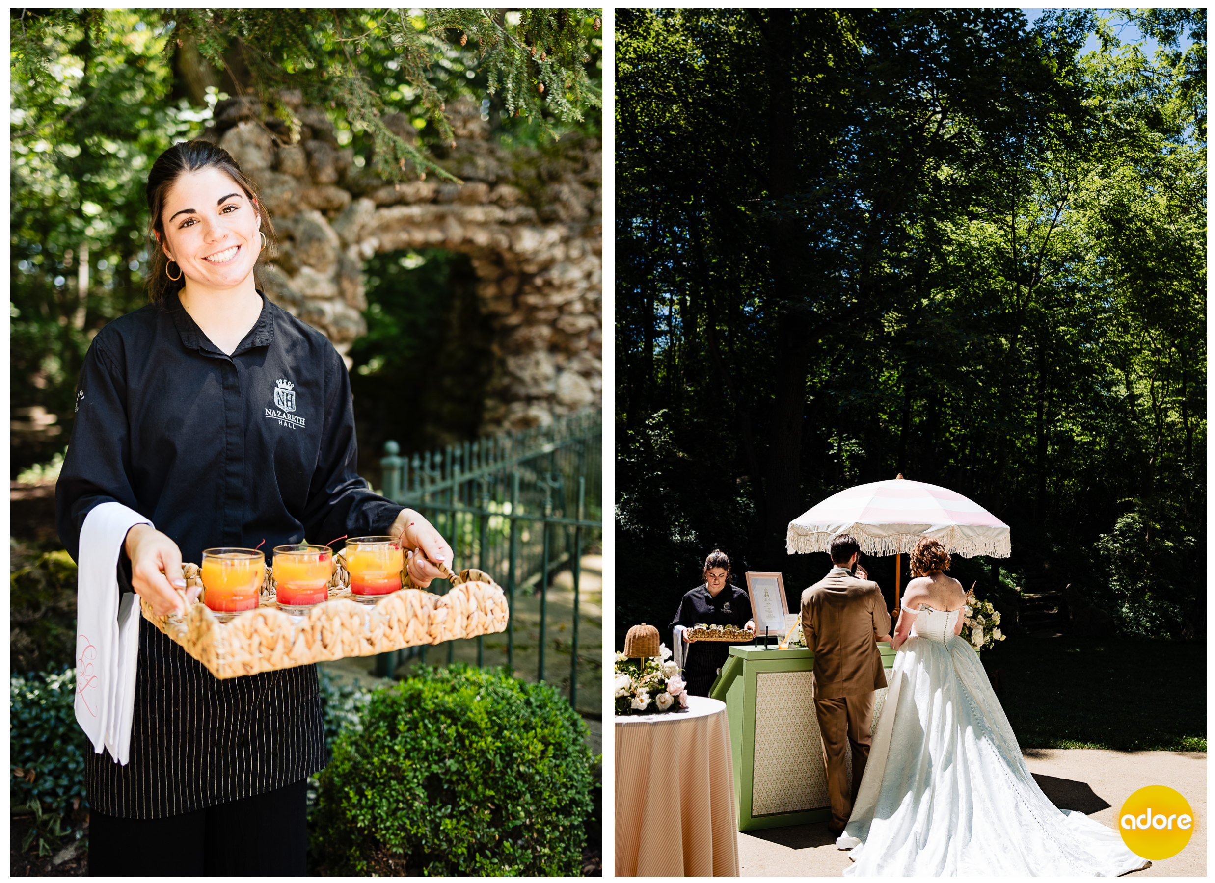 For this styled shoot, the Grotto bloomed into life. Cassandra Clair of Event Prep, Abby Henley of Nazareth Hall and Michelle Cooper from Belle & Bee Photography brought a new vision to the Grotto space that was fresh, elegant and bursting with inspiration! The entire vendor team knocked the Garden Soiree concept out of the park with perfect details created by Shayna Looney of Shaytionary Designs, florals from the Flower Mercantile and Belle Fleur that paired perfectly with the whimsy of our garden theme. Let us not forget that Nazareth Hall is a premier caterer that offers not only amazing appetizers (delivered down to your guests after the ceremony so that couples and wedding parties can re-fuel before photos!) but their upping their food game by offering a custom Gelato Bar perfect for hot days and summer nights!